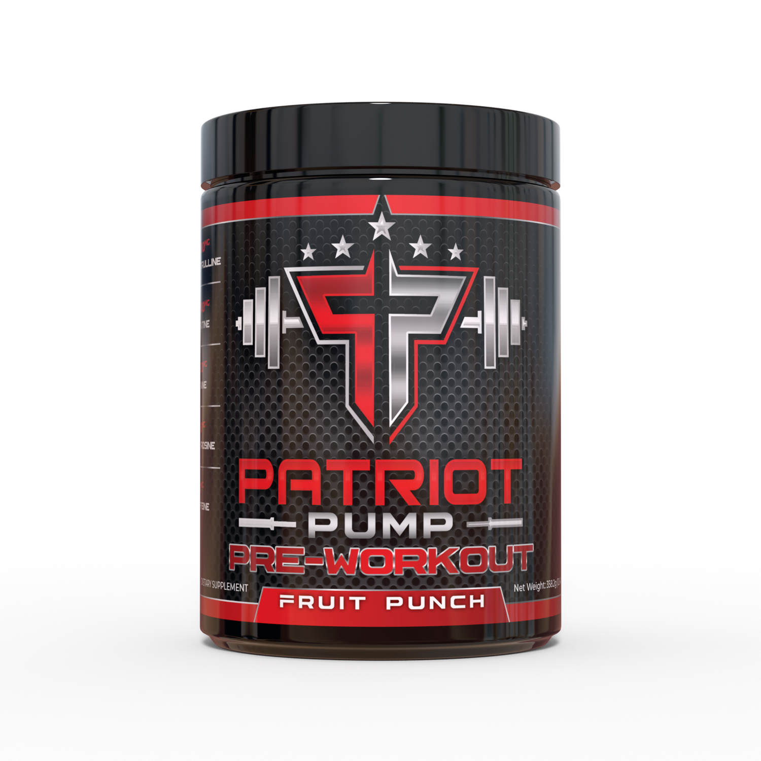 patriot pump is filled with performance ingredients to improve your pump at the gym. effective doses of creatine, l-citrulline, malic acid, and betaine anhydrous. this combination will increase bloodflow and muscle water retention for effective gym sessions.